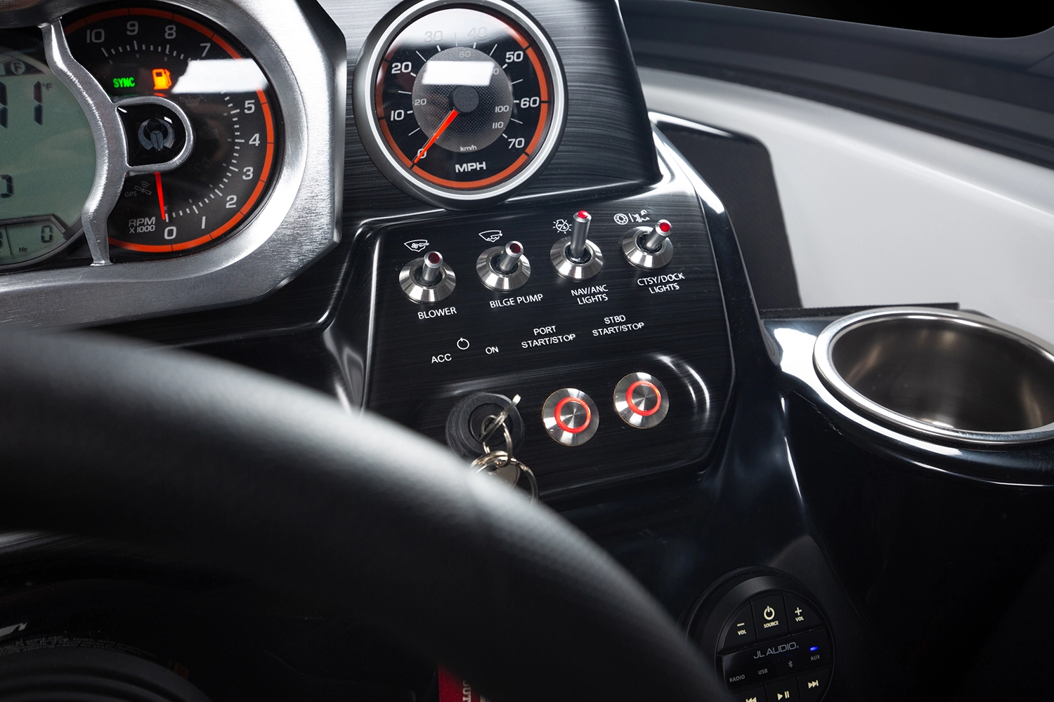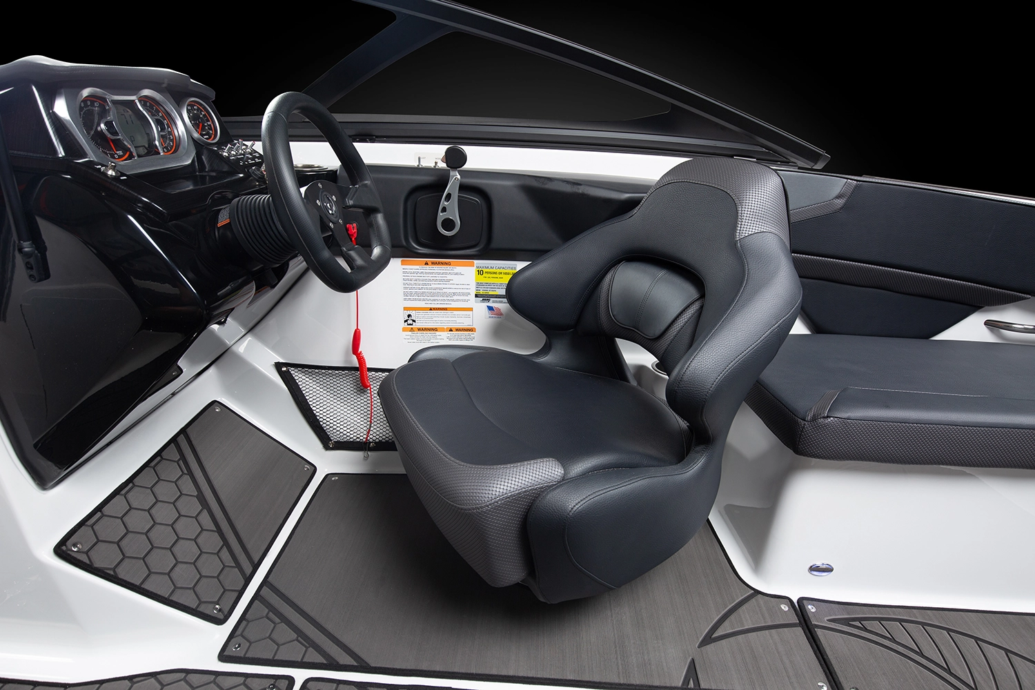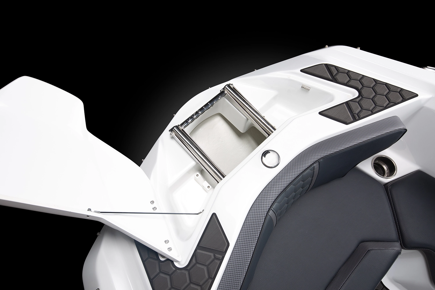 300馬力のエンジン2基が生み出すアグレッシブな走りなもちろん、充実の収納スペースで ゆとりある船上空間でトーイングスポーツもお愉しみ頂けます。